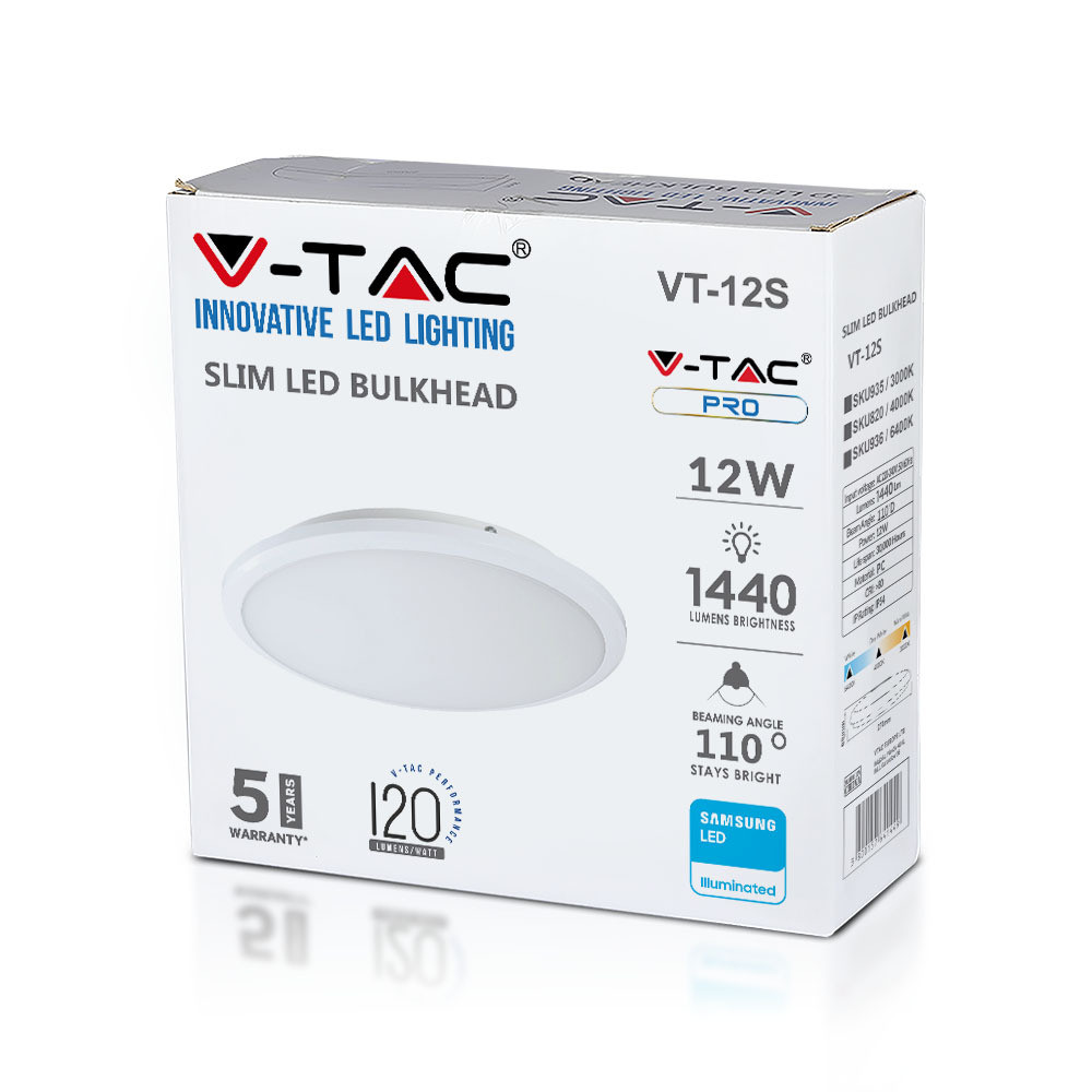 VT-12S 12W LED Vékony Kupolás Lámpa Samsung Chip 3000K
