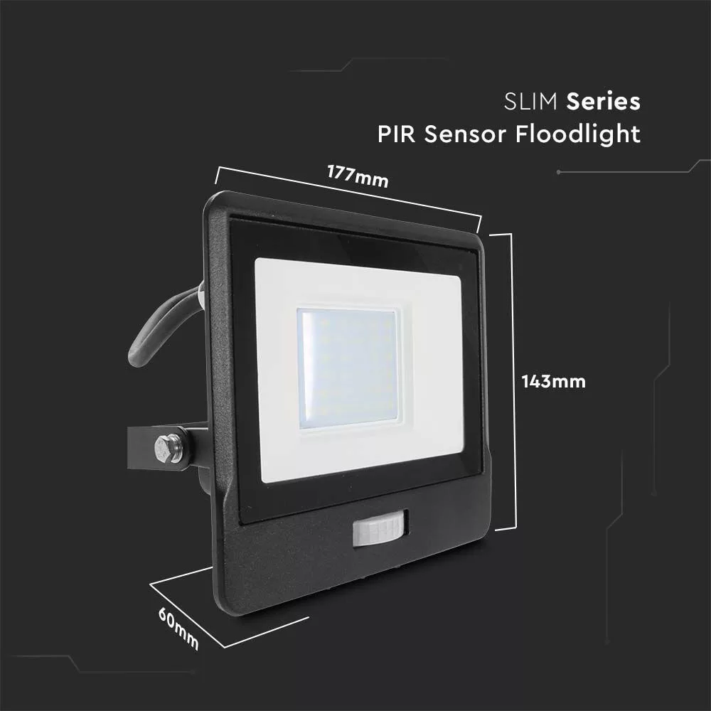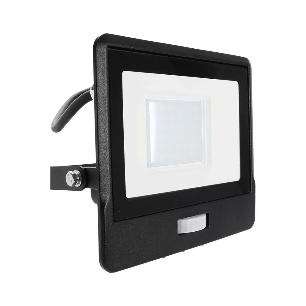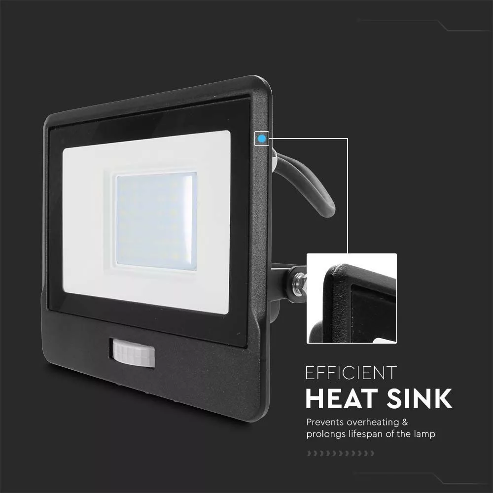 LED reflektor PIR érzékelős PRO, 30w, 3000K, meleg fehér, 2340lm, 100°, fekete, CRI>80, IP65, V-TAC, 20286