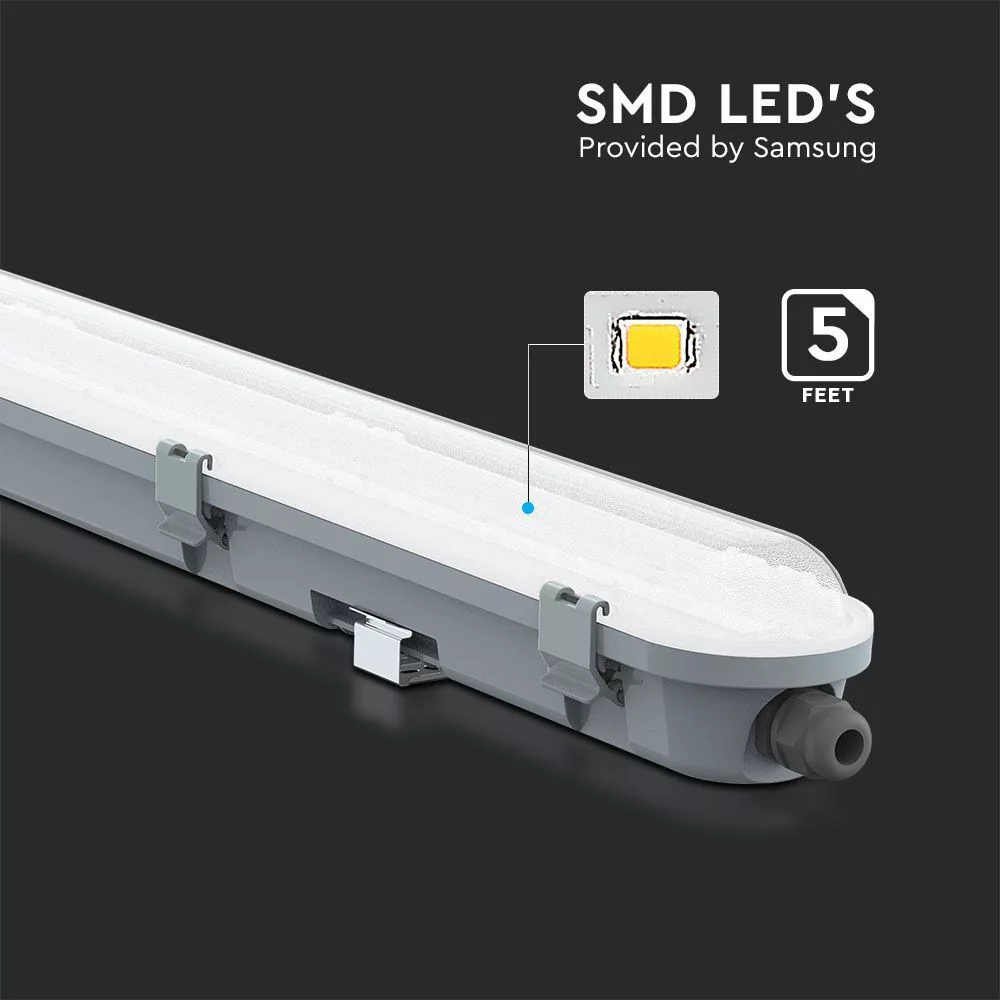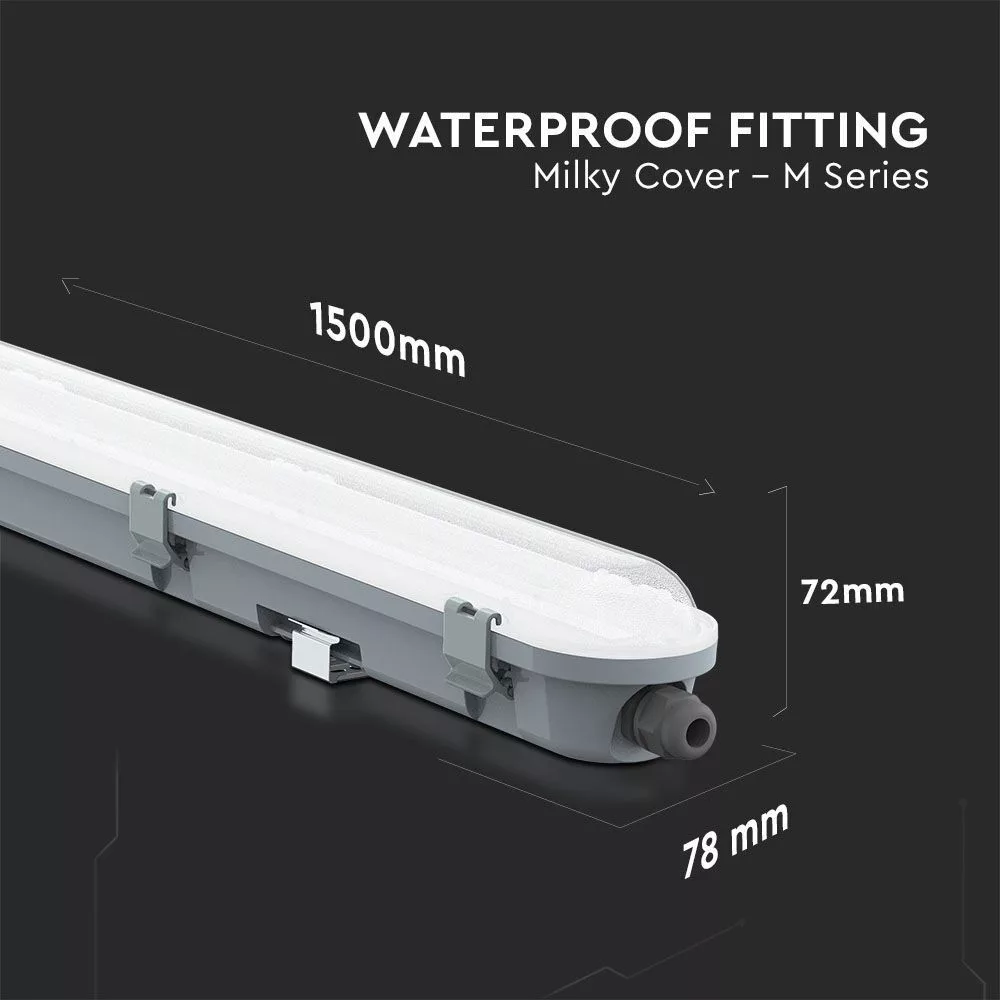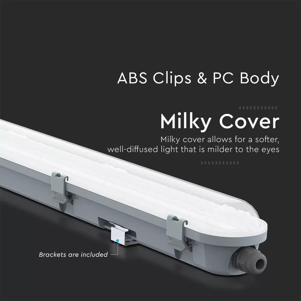 LED vízálló lámpatest PRO Milky Cover, 48w, 4000K, természetes fehér, 5760lm, 120°, tejes, CRI>80, IP65, V-TAC, 2120203