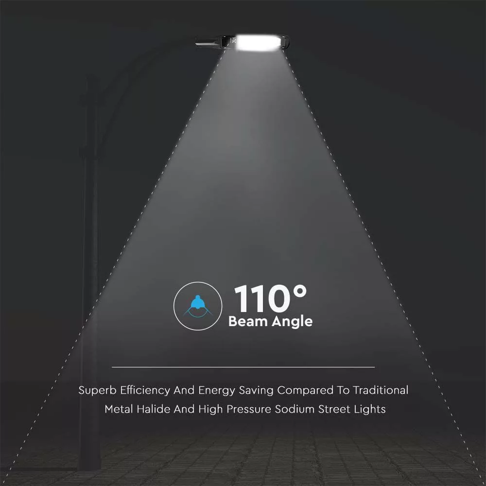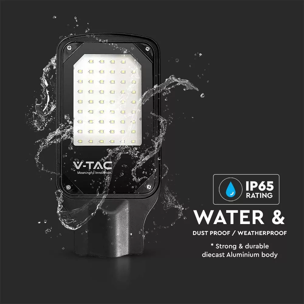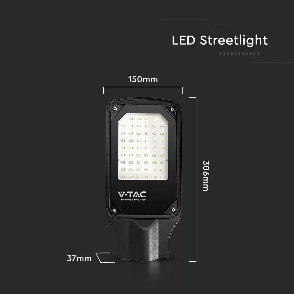LED Vékony utcai lámpa, 50w, 6500K, hideg fehér, 4270lm, 110°, fekete, CRI>70, IP65, V-TAC, 10209