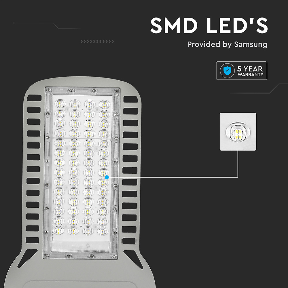 LED Vékony utcai lámpa, 150w, 6500K, hideg fehér, 20300lm, 120°, szürke, CRI>70, IP65, V-TAC, 21963