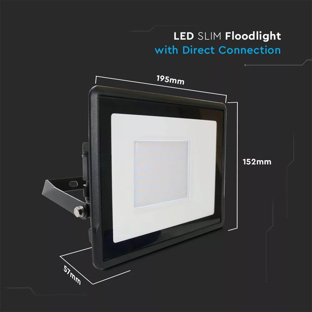 VT-158 50W LED Reflektor Samsung Chip Közvetlen Csatlakozással 3000K Fekete Test