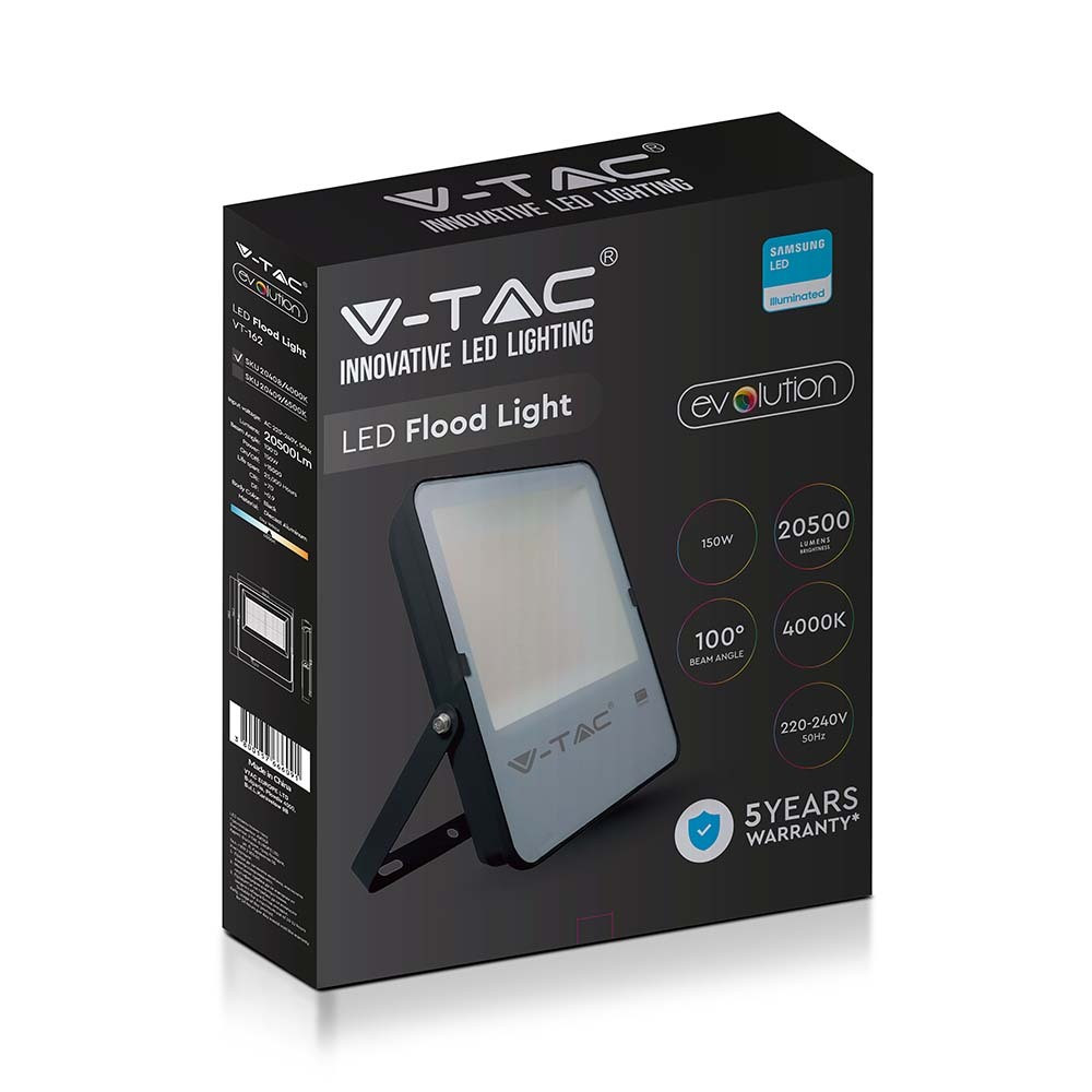 LED reflektor PRO, 150w, 6500K, hideg fehér, 20500lm, 100°, fekete, CRI>70, IP65, V-TAC, 20409