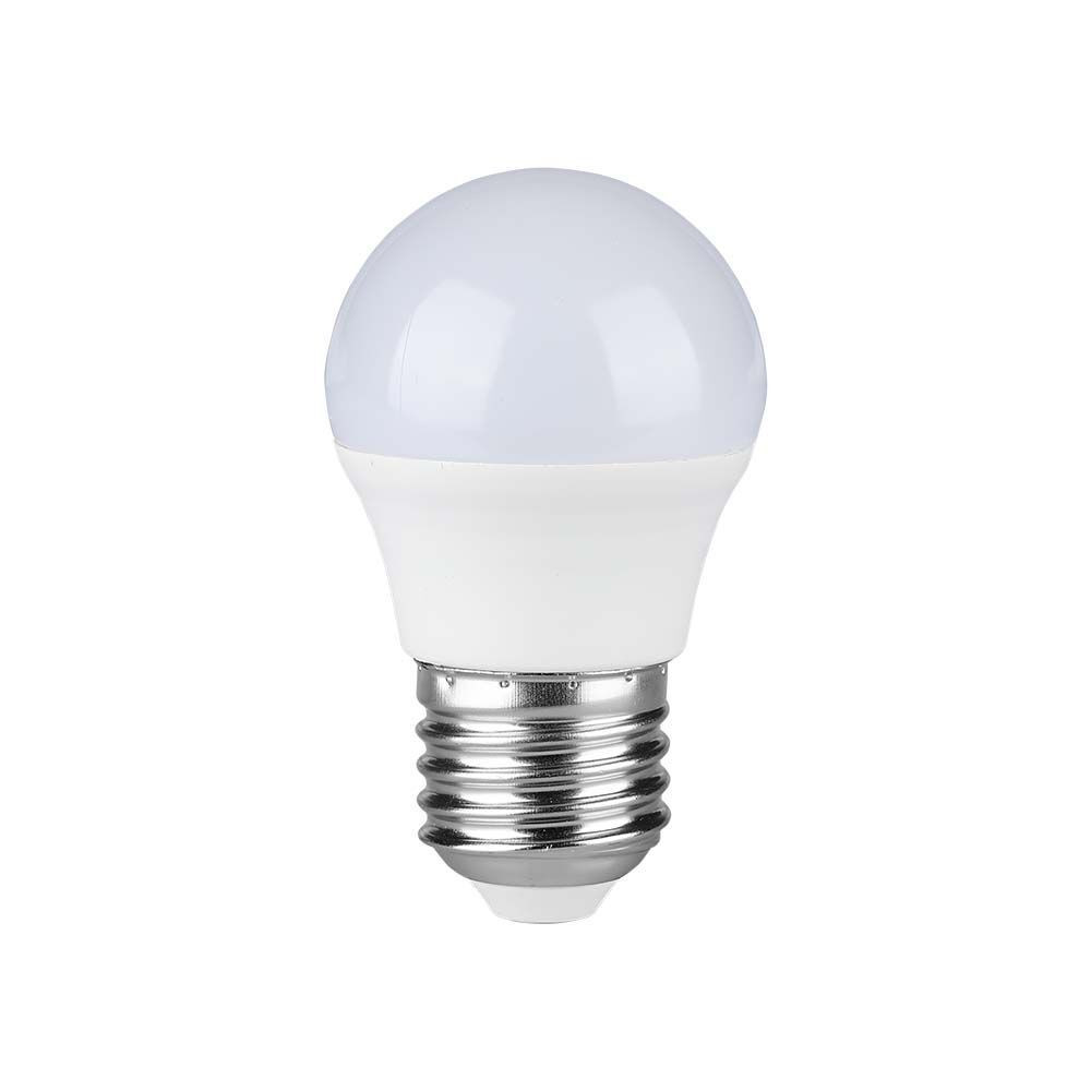 LED izzó gömb alakú E27, 3,7w, 4000K, természetes fehér, 320lm, 180°, fehér, CRI>80, V-TAC, 214162