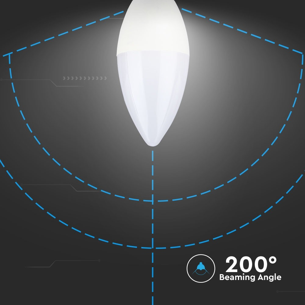 LED izzó gyertya alakú E14, 5,5w, 6400K, hideg fehér, 470lm, 200°, fehér, CRI>80, V-TAC, 42411