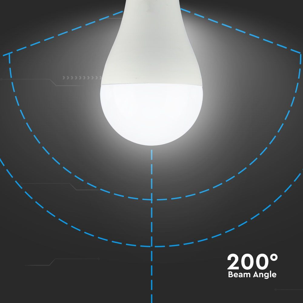 LED izzó E27, 15w, 3000K, meleg fehér, 1521lm, 200°, fehér, CRI>80, V-TAC, 214453