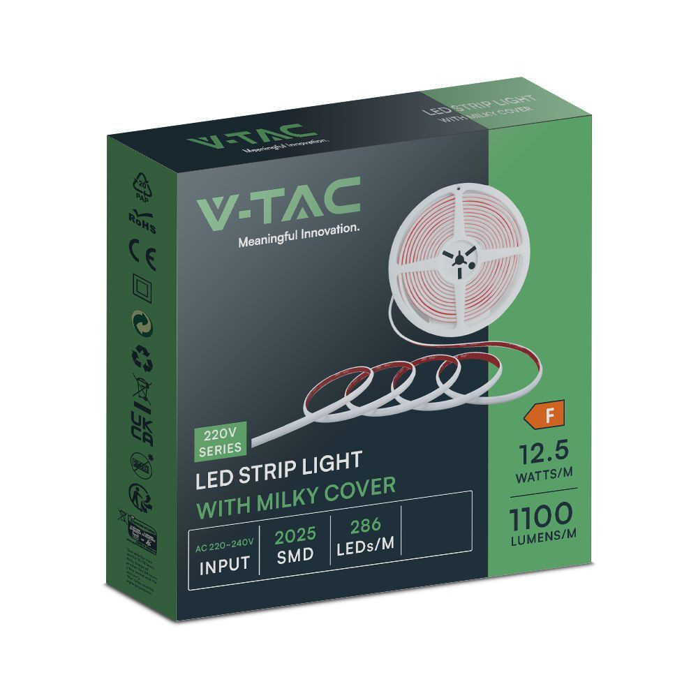 Kültéri LED szalag 220V, 12,5 w, 3000K, meleg fehér, 1100 lm/m, 220-240V, 120°, CRI>80, IP65, V-TAC, 23715