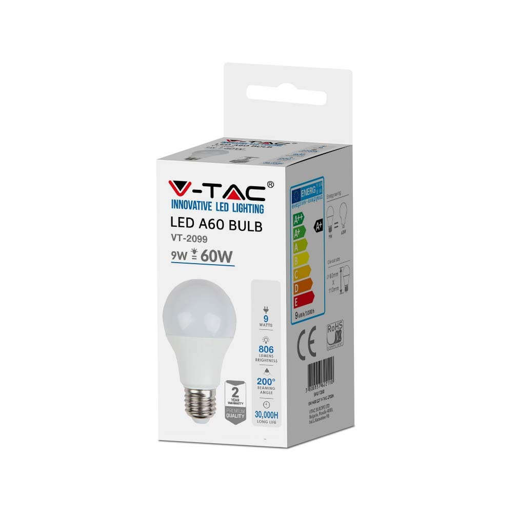 VT-2099 9W A60 Hőműanyag Izzók 6400K E27