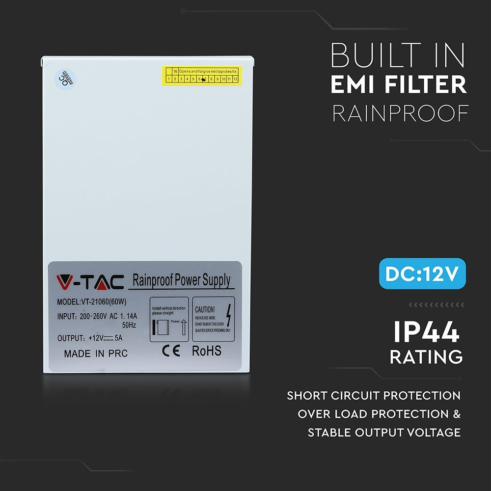 VT-21060 60W LED Tápellék Esőálló 12V 5A IP44