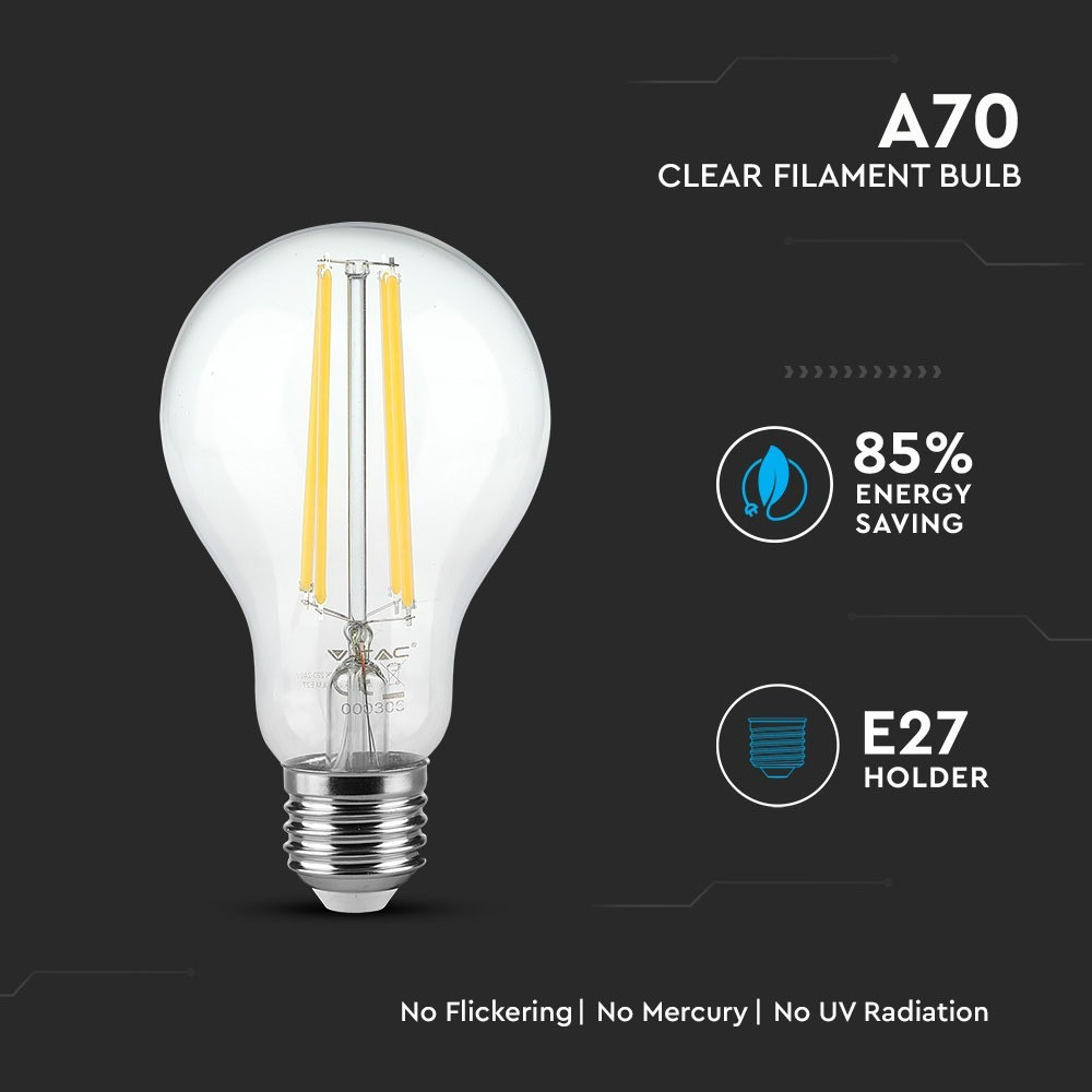VT-2133 12,5 W-Os A70 LED Izzószálas Izzó - Átlátszó Üveg, 6400 K Színhőmérséklettel, E27