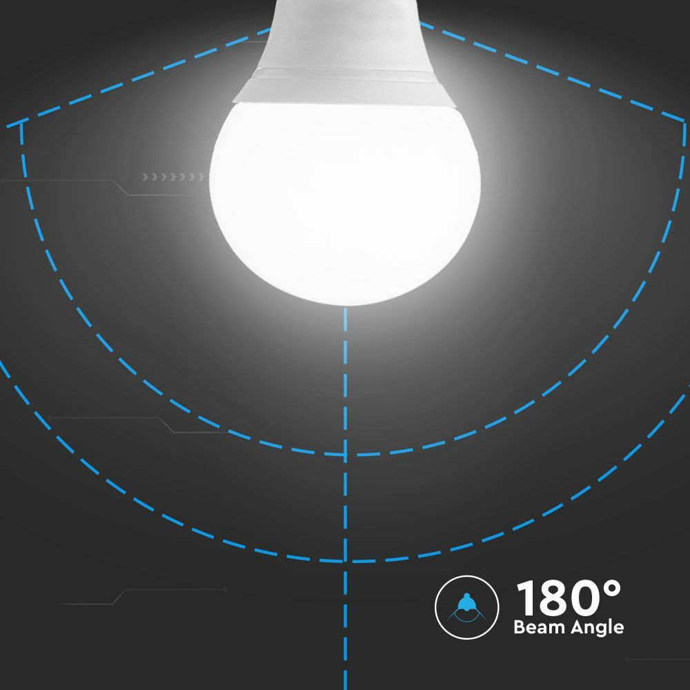 LED izzó gömb alakú E14, 4,5w, 4000K, természetes fehér, 470lm, 180°, fehér, CRI>80, 3 db/csomag, V-TAC, 217358