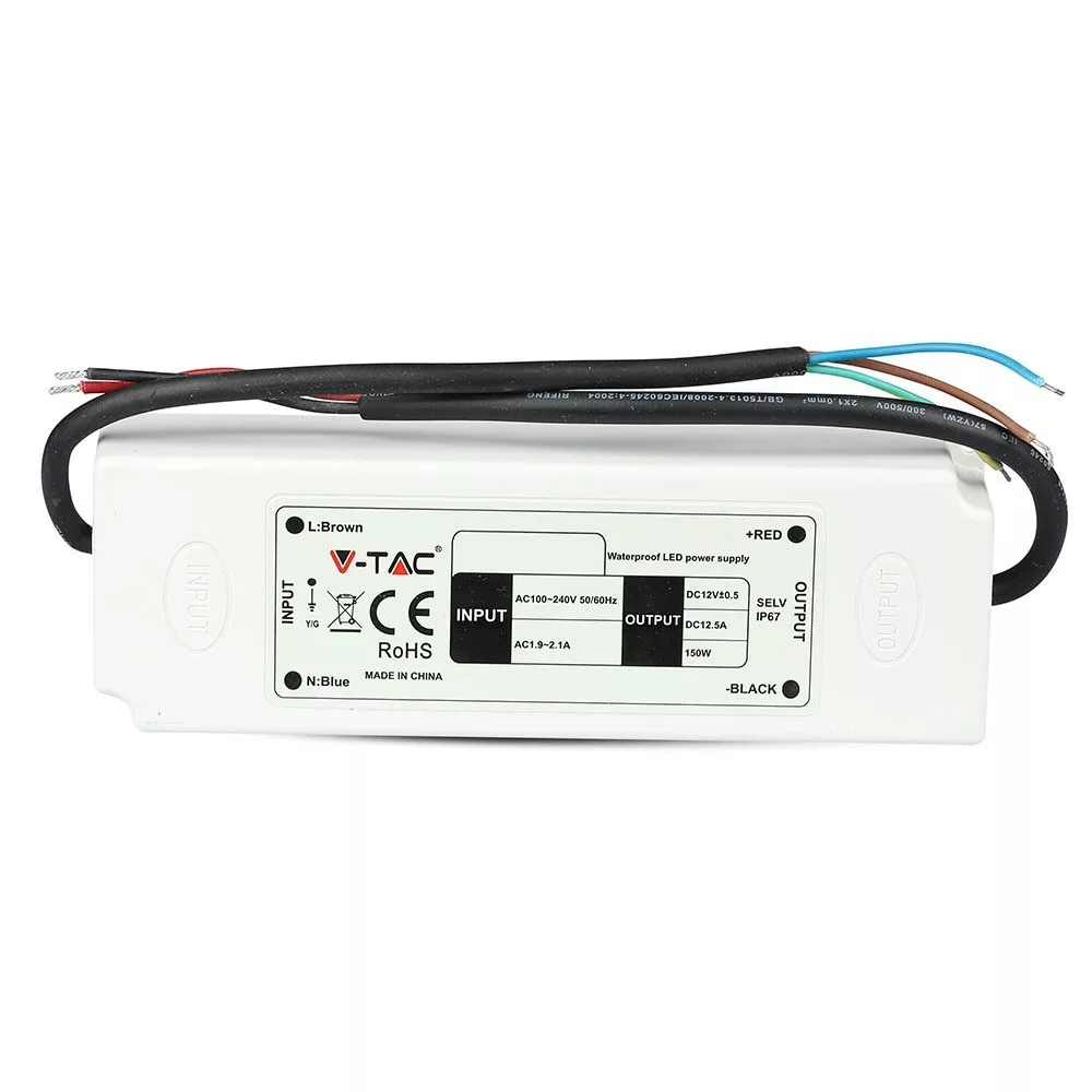 Vízálló LED szalag tápegység 12V, 100-240V, fehér, IP67, V-TAC, 3235