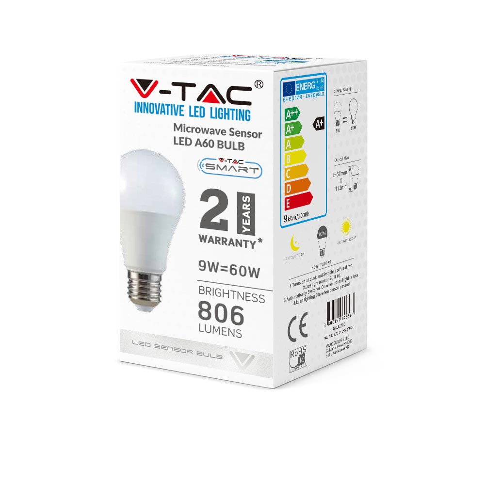 VT-2219 9W A60 LED Izzó Mikrohullámú Érzékelővel 6400K E27