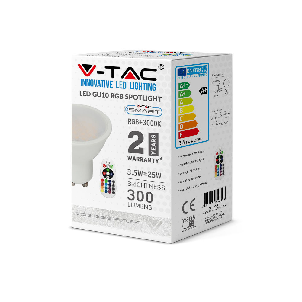 VT-2244 3,5 W GU10 Reflektor (Rf Vezérlésű - Szabályozható) Milky Cover - RGB+3000K 110'D