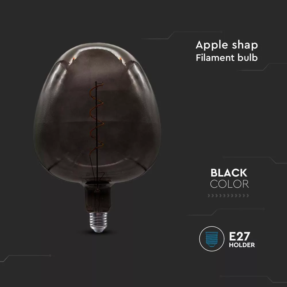 LED izzó design Alma alakú E27, 4w, 300°, fekete, CRI>80, V-TAC, 8064