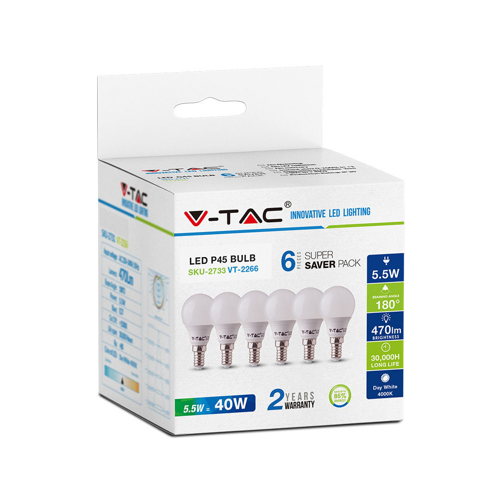 VT-2266 5,5 W P45 LED Műanyag Izzó 4000 K E14 6 Db/Csomag