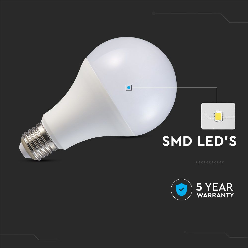 LED izzó E27 PRO, 20w, 3000K, meleg fehér, 2452lm, 200°, fehér, CRI>80, V-TAC, 21237