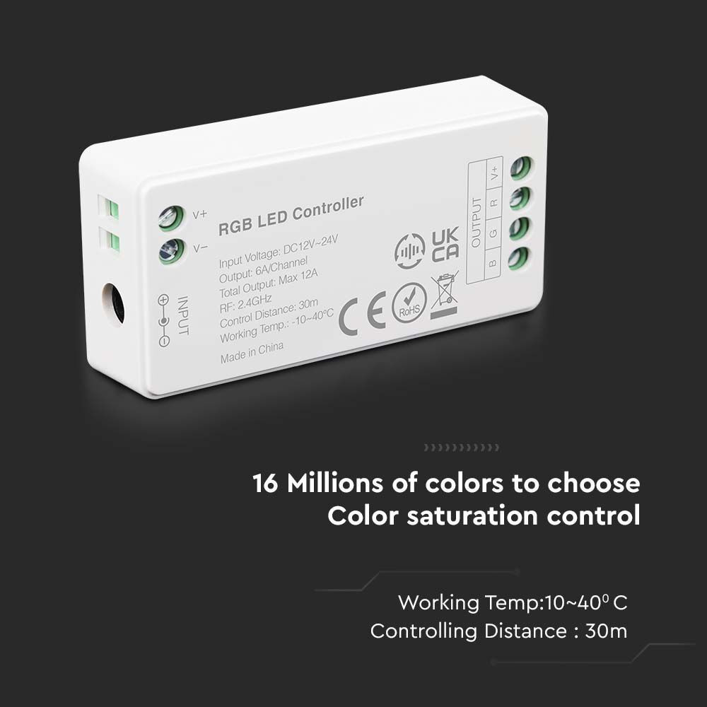 Bemutatjuk a VT-2432 RGB WiFi vezérlőt, amelyet LED-szalagok zökkenőmentes vezérlésére terveztek. Ez az innovatív eszköz lehetővé teszi a színek és a fényerő beállítását, hogy tökéletes hangulatot teremtsen a térben. Kompakt, 37 mm x 24 mm x 76 mm-es méretével könnyen illeszkedik különféle beállításokhoz. A VT-2432 DC 12-24V tápegységről működik, és maximális áramfelvétele 12A, így energiatakarékos és hosszú élettartamú világítást biztosít. Egyszerű plug-and-play telepítési módszerrel rendelkezik, amely lehetővé teszi a meglévő rendszerekbe való könnyű integrálást. A vezérlő fényereje szabályozható, így bármilyen alkalomra elérheti a kívánt világítási hatást. Ez a vezérlő WiFi-n keresztül csatlakozik, és 2,4 GHz-es vezeték nélküli frekvencián működik, megbízható teljesítményt és távoli hozzáférést biztosítva. A méretre vágási képességnek köszönhetően sokoldalúan használható különféle LED-szalagok telepítéséhez. A termékre 2 év garancia vonatkozik, így a vásárlás nyugodt lehet. A lakossági vagy kereskedelmi használatra tökéletes VT-2432 okos választás mindazok számára, akik fokozni szeretnék világítási élményüket.