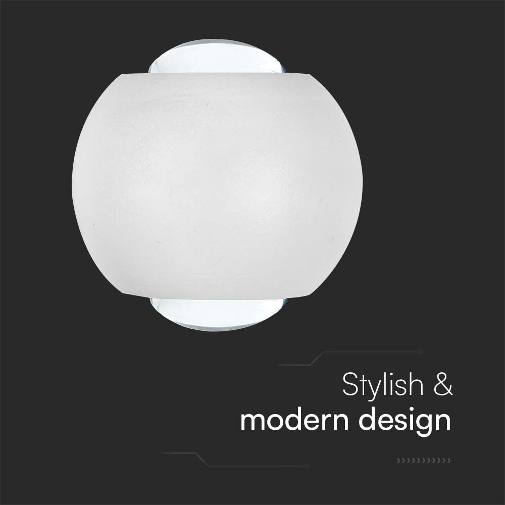 Kültéri LED fali lámpa kétiriányú, 2w, 4000K, természetes fehér, 200lm, 60°, fehér, CRI>80, IP54, V-TAC, 10587