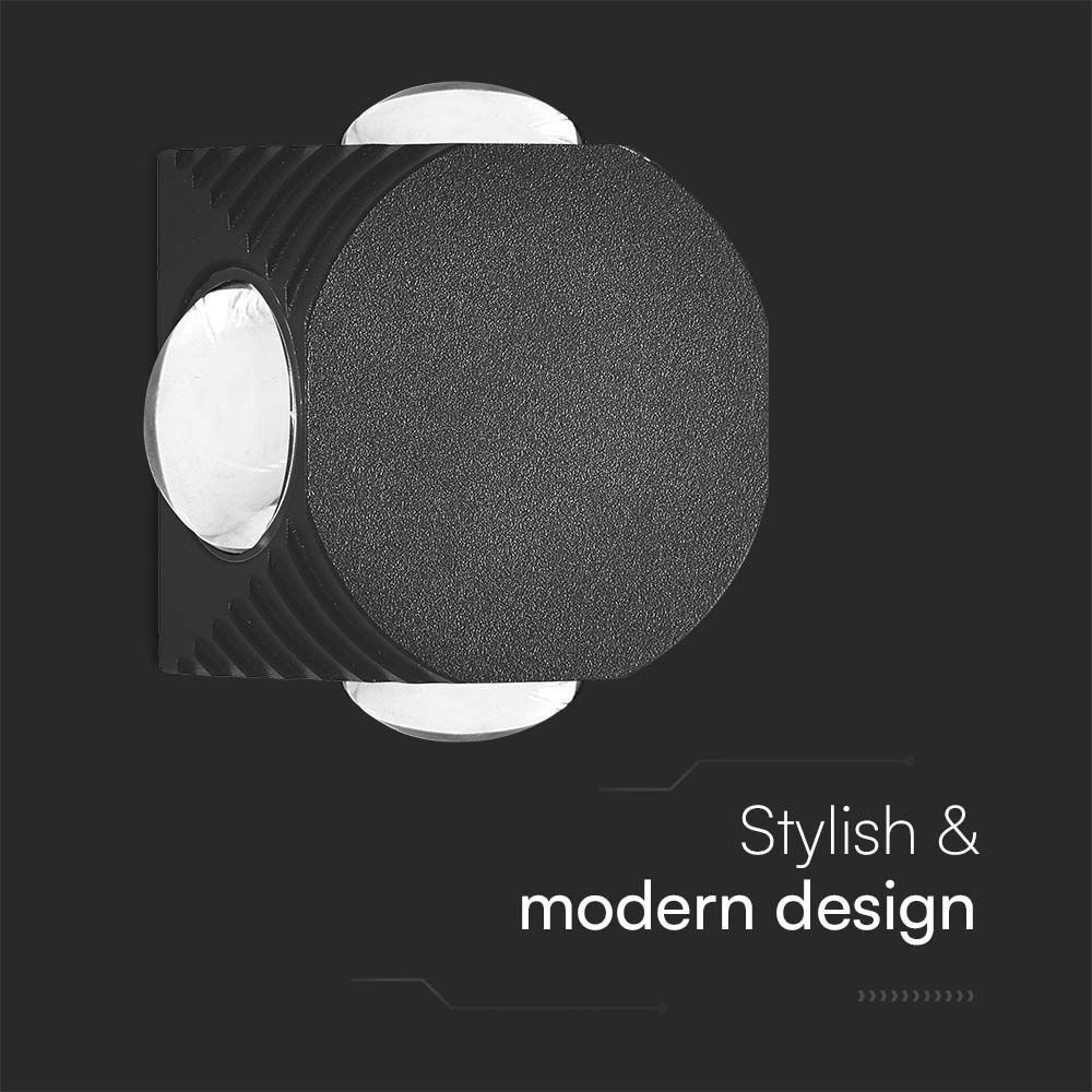 LED fali lámpa 4 irányú világítás kerek IP54, 4w, 3000K, meleg fehér, 390lm, 60°, fekete, CRI>80, V-TAC, 10588