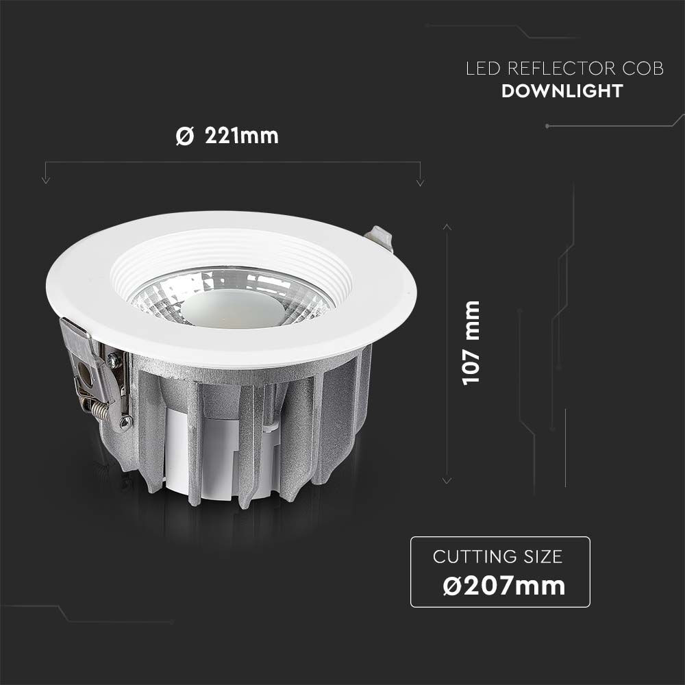 Süllyeszthető COB LED mélysugárzó lámpa, 40w, 6500K, hideg fehér, 4800lm, 100°, fehér, CRI>80, V-TAC, 211280