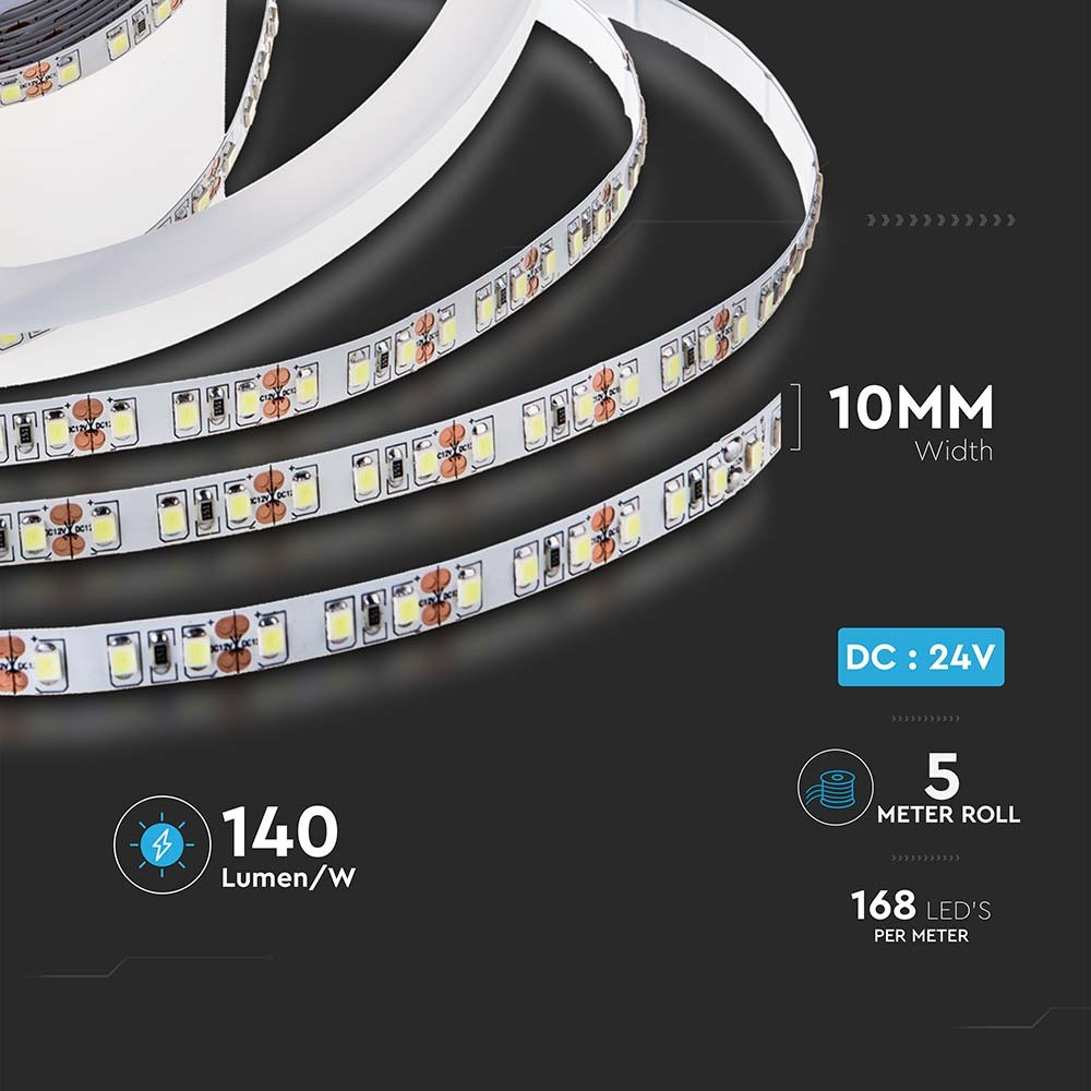 Beltéri LED szalag, 12 w, 4000K, természetes fehér, 1680 lm/m, 24V, 120°, CRI>80, V-TAC, 212597