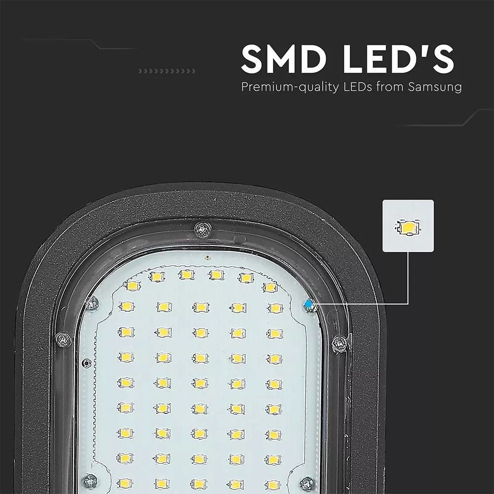 Bemutatkozik a VT-31ST 30 W-os LED-es utcai lámpa, amelyet hatékony és megbízható világítási megoldásokhoz terveztek. A Samsung SMD chipekkel felszerelt utcai lámpa 2350 lumen erős fehér fényt bocsát ki 6400 K színhőmérsékleten, így tiszta láthatóságot biztosít. Tartós alumínium és PC házzal rendelkezik, kültéri használatra alkalmas, IP65 besorolással az időjárás viszontagságaival szembeni fokozott ellenállás érdekében. Hosszú, 30 000 órás élettartamával és magas, F (2021) energiahatékonysági besorolásával ez az utcai lámpa jelentős energiamegtakarítást kínál a hagyományos világításhoz képest. A VT-31ST AC: 200-240 V bemeneti feszültségtartományban működik, teljesítménytényezője meghaladja a 0,9-et, így optimális teljesítményt biztosít. A telepítés egyszerű, méretei 305 mm hosszúak, 145 mm szélesek és 85 mm magasak, így sokoldalú választás a különféle beállításokhoz. Az egységcsomagolás dobozonként 4 lámpát tartalmaz, raklaponként összesen 320 darab. A 3 év garanciával rendelkező VT-31ST egy villódzásmentes világítási megoldás, amely minőséget és megbízhatóságot garantál minden utcai világítási igény esetén.
