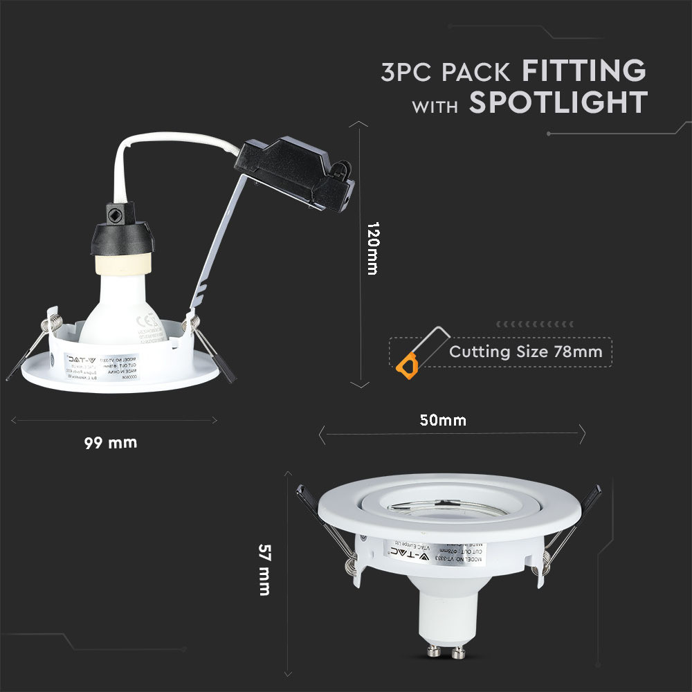 VT-3333 5W Gu10 spotlámpa szerelvényekkel – fehér test 3000K 3 db/csomag