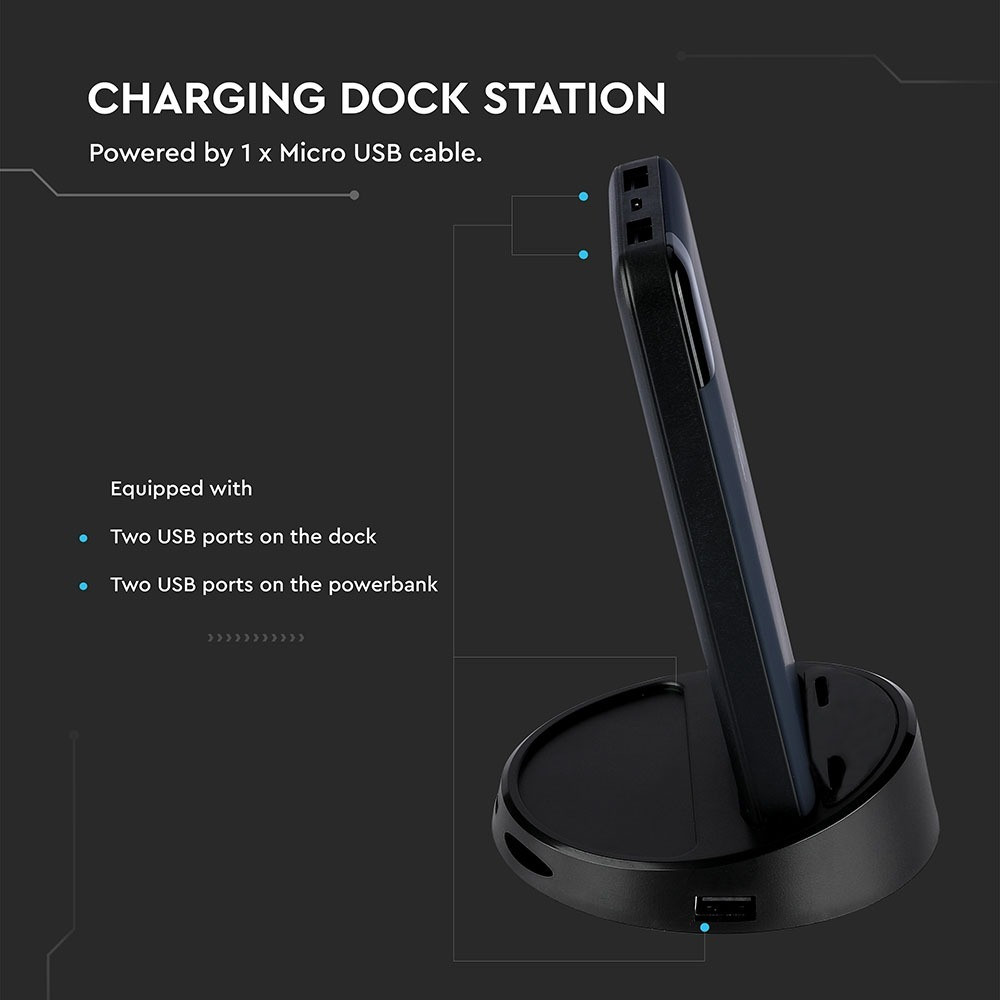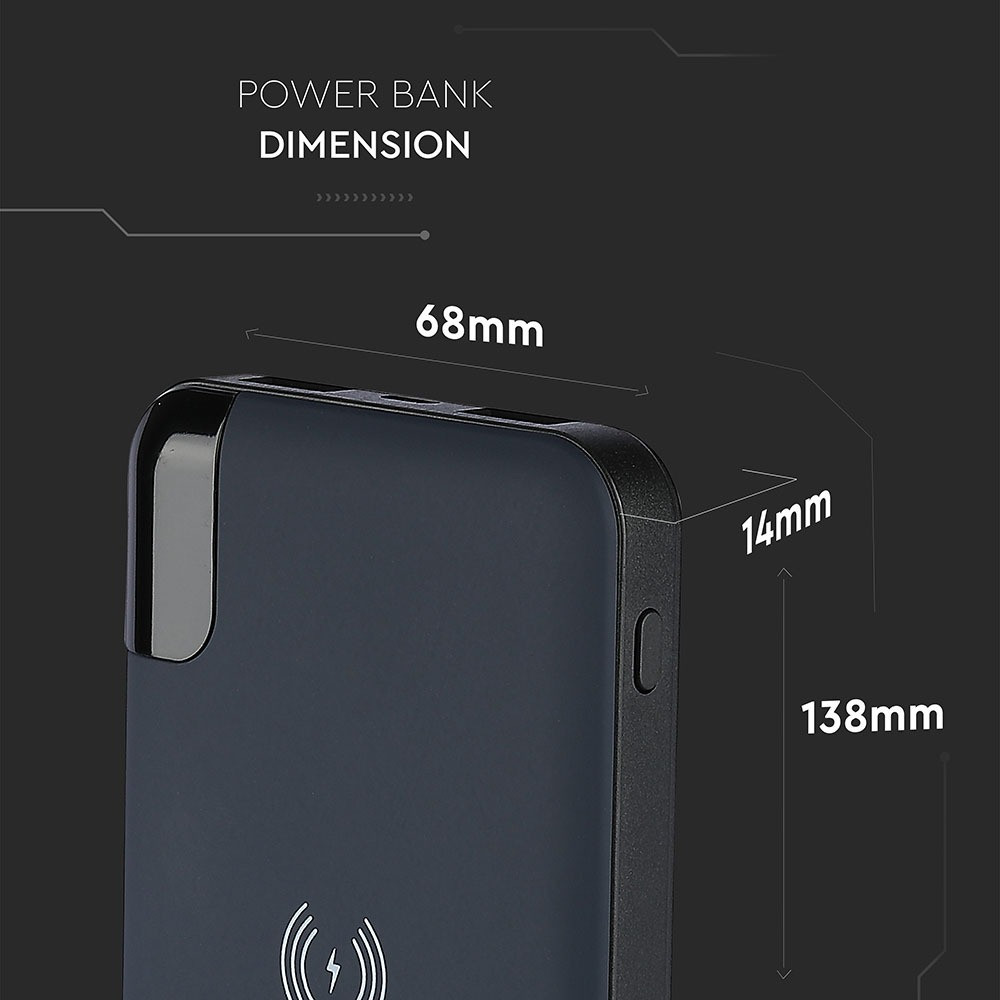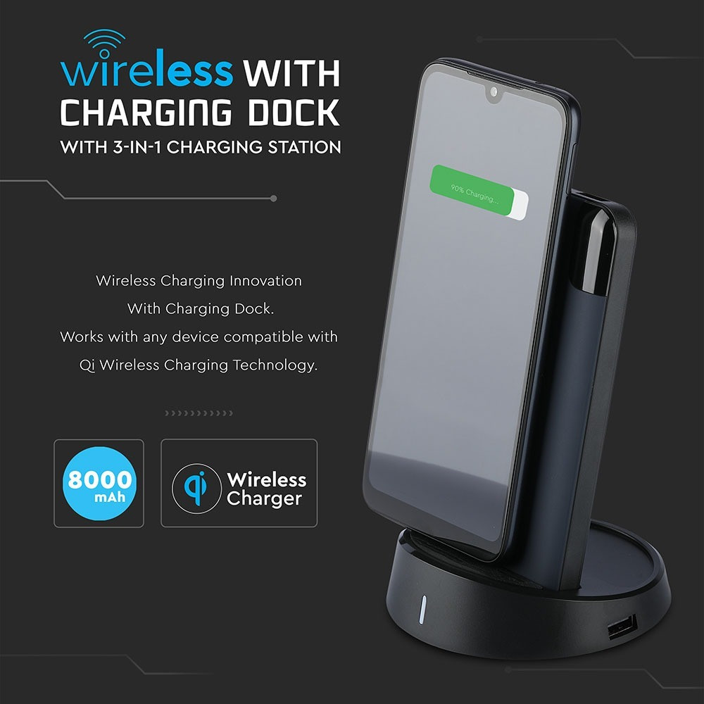 VT-3509 8000 Mah Vezeték Nélküli Power Bank Kijelzővel És Állványnyal - Sötétkék