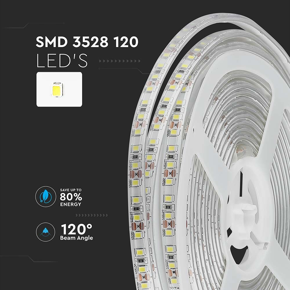 Kültéri LED szalag, 8 w, 6500K, hideg fehér, 800 lm/m, 12V, 120°, CRI>80, IP65, V-TAC, 212037