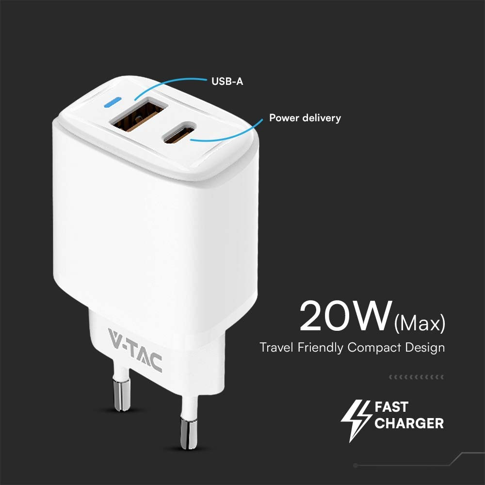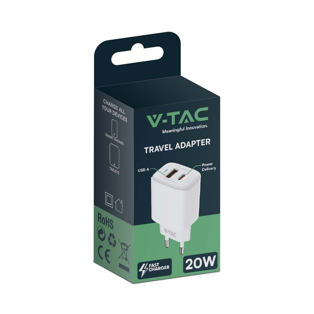 USB-adapter, 20w, fehér, V-TAC, 23580