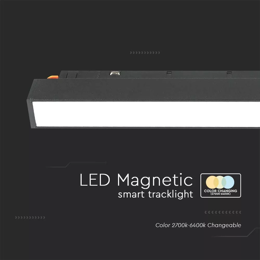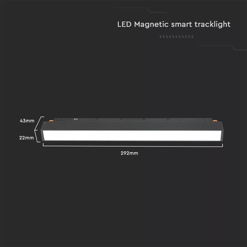 SMART lineáris LED lámpa mágneses track light sínhez, 12w, CCT, 1200lm, 90°, fekete, CRI>90, 43mm, V-TAC, 6882