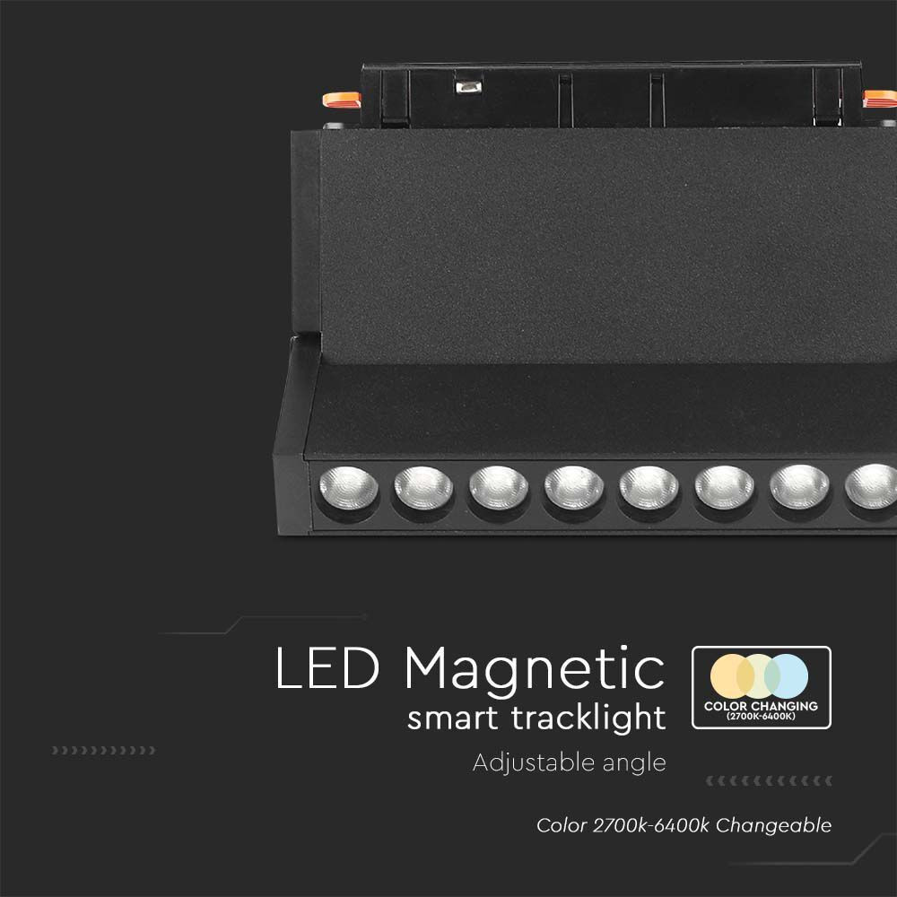 SMART LED dönthető spotlámpa mágneses track light sínhez, 18w, CCT, 1500lm, 30°, fekete, CRI>90, V-TAC, 6887