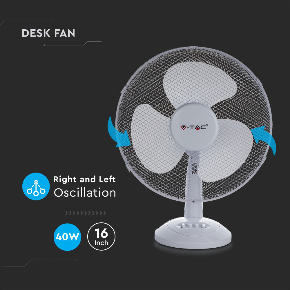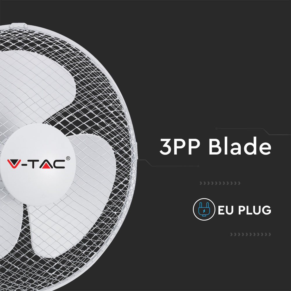 16 hüvelykes asztali ventilátor, 40w, fehér, V-TAC, 7925