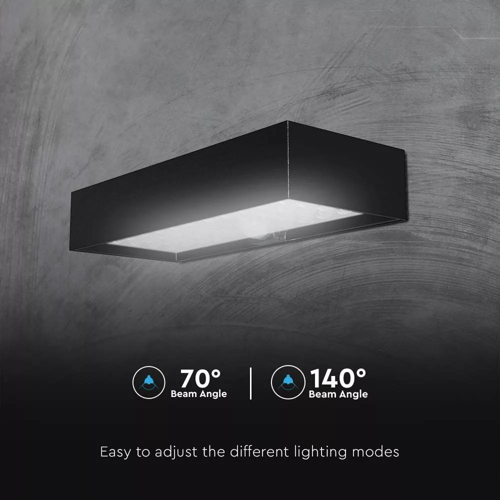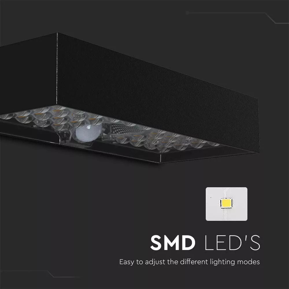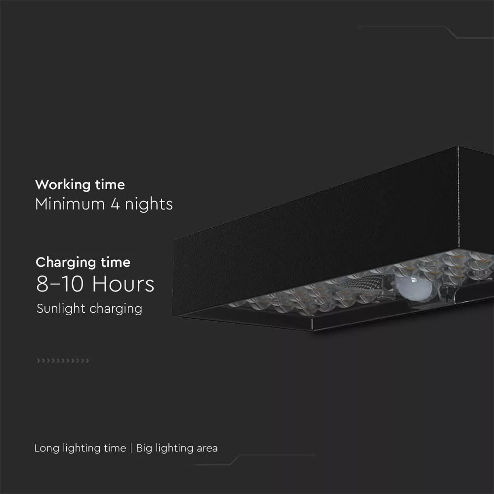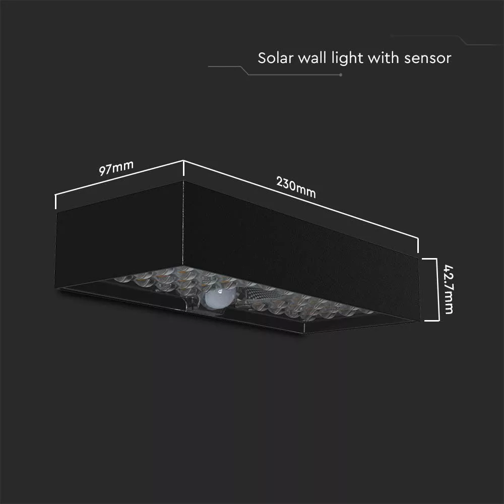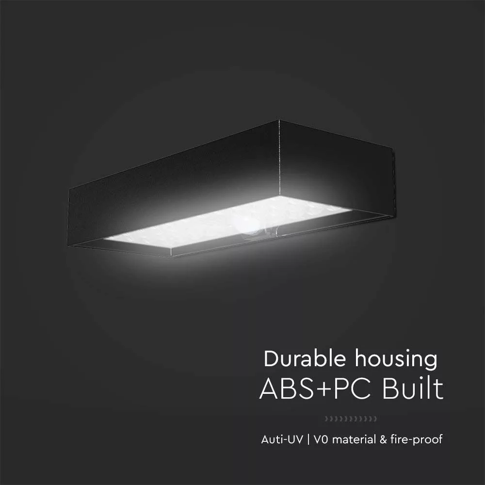Szolár LED fali lámpa mozgásérzékelővel, 6w, 4000K, természetes fehér, 900lm, 140°x70°, fekete, IP65, V-TAC, 10307