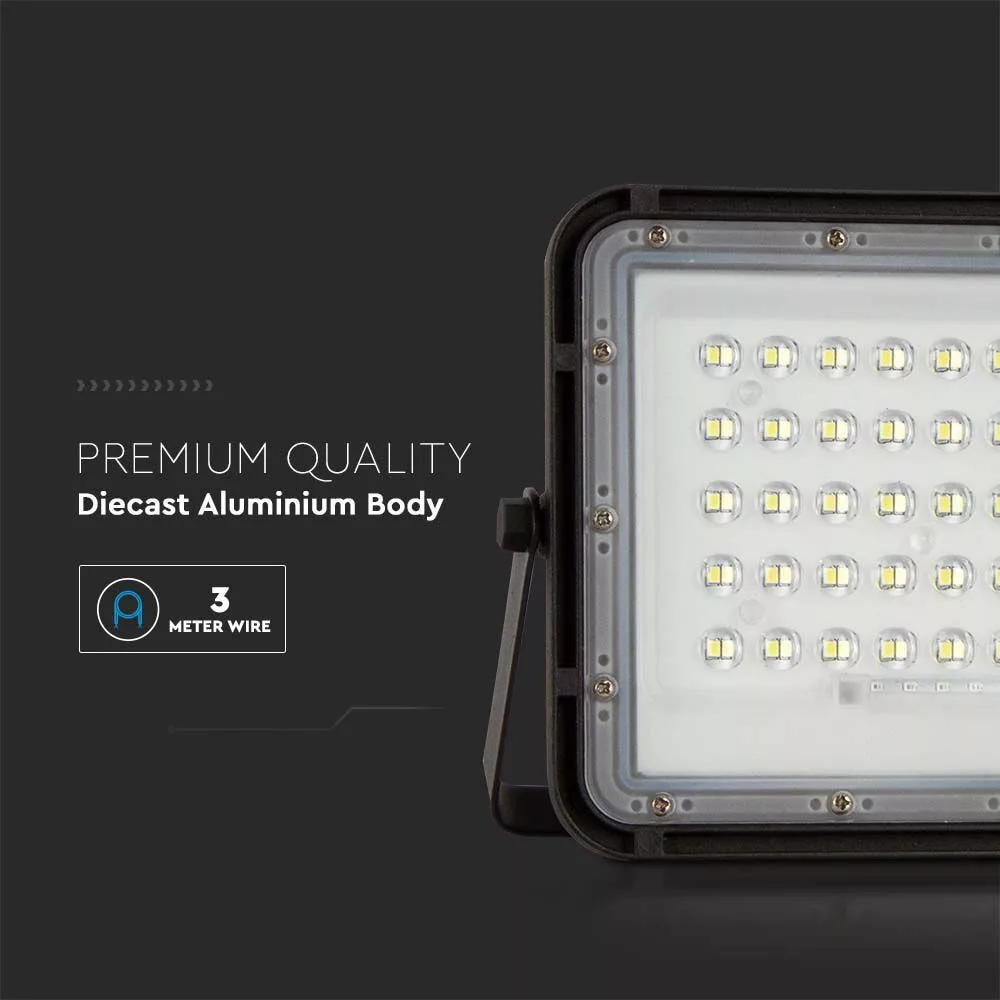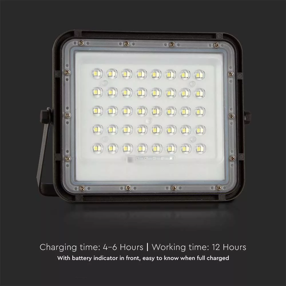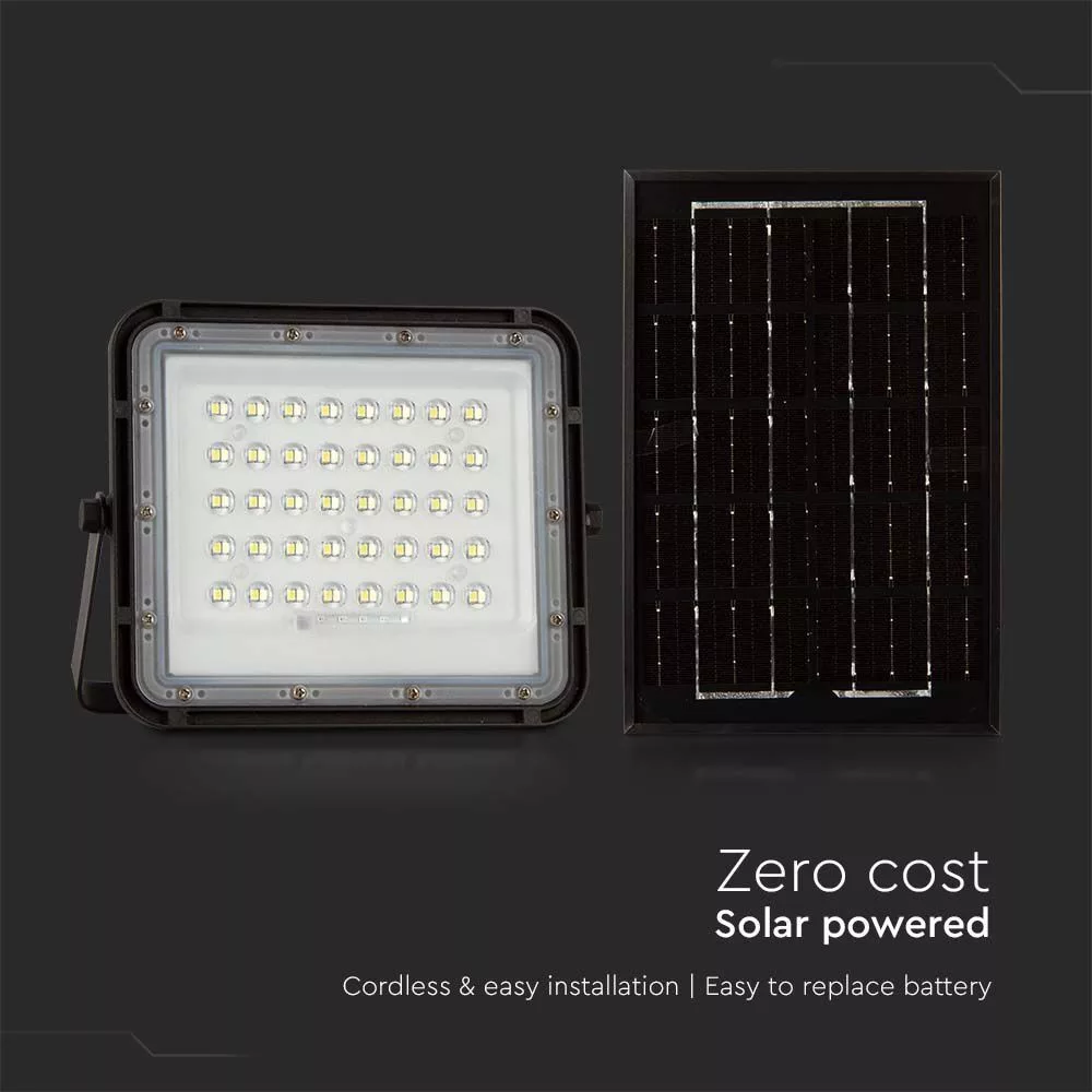 Napelemes LED reflektor távirányítóval, 4000K, természetes fehér, 400lm, 120°, fekete, IP65, V-TAC, 7822