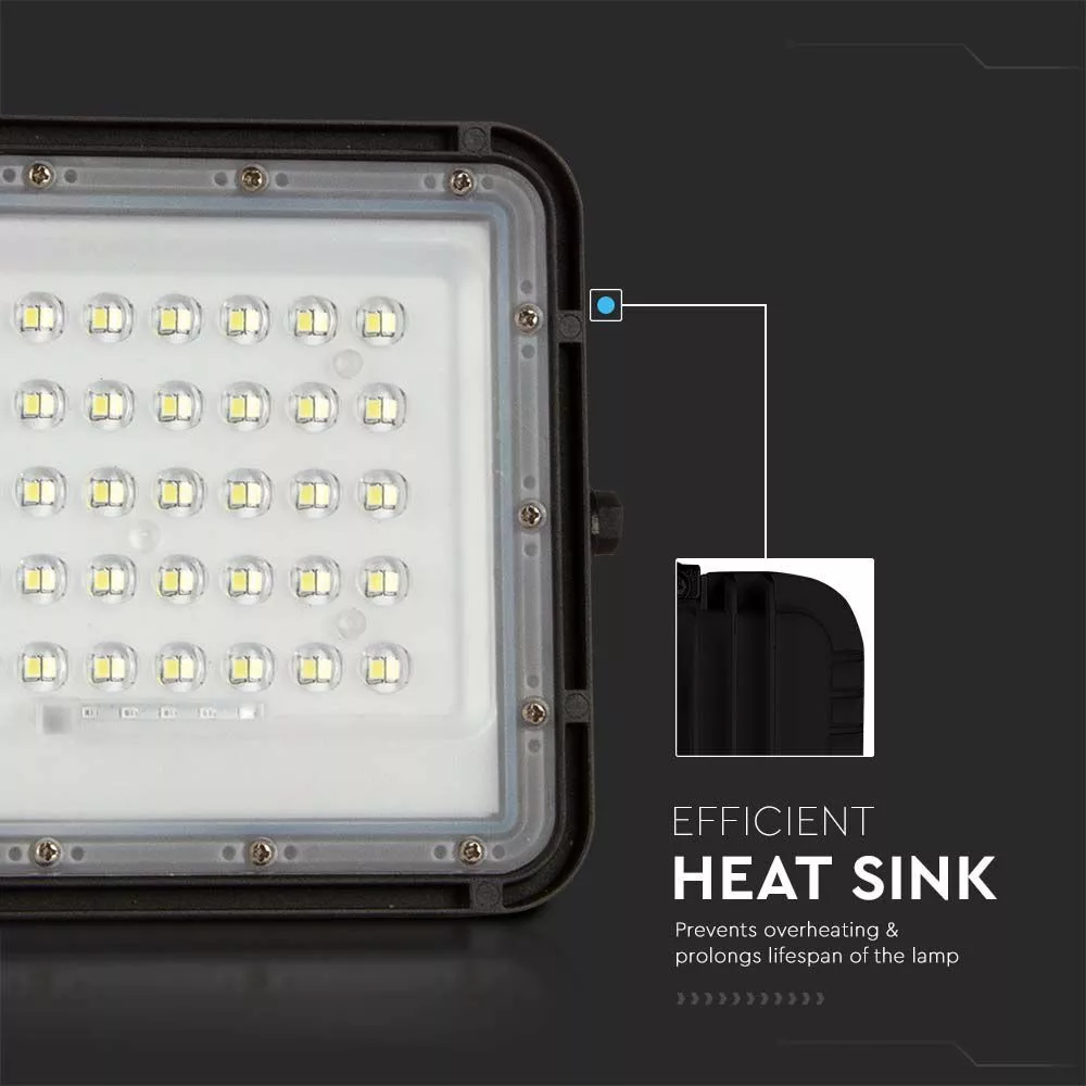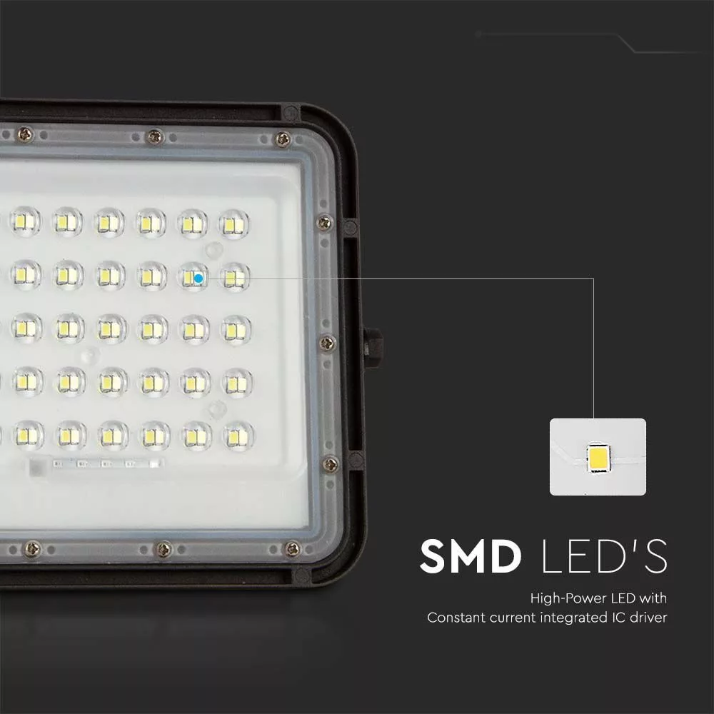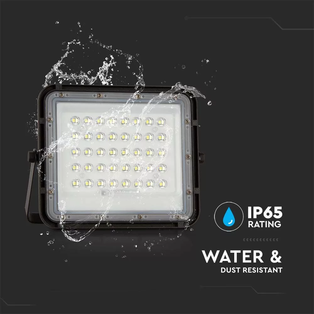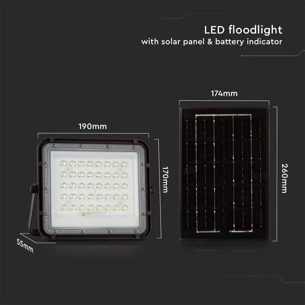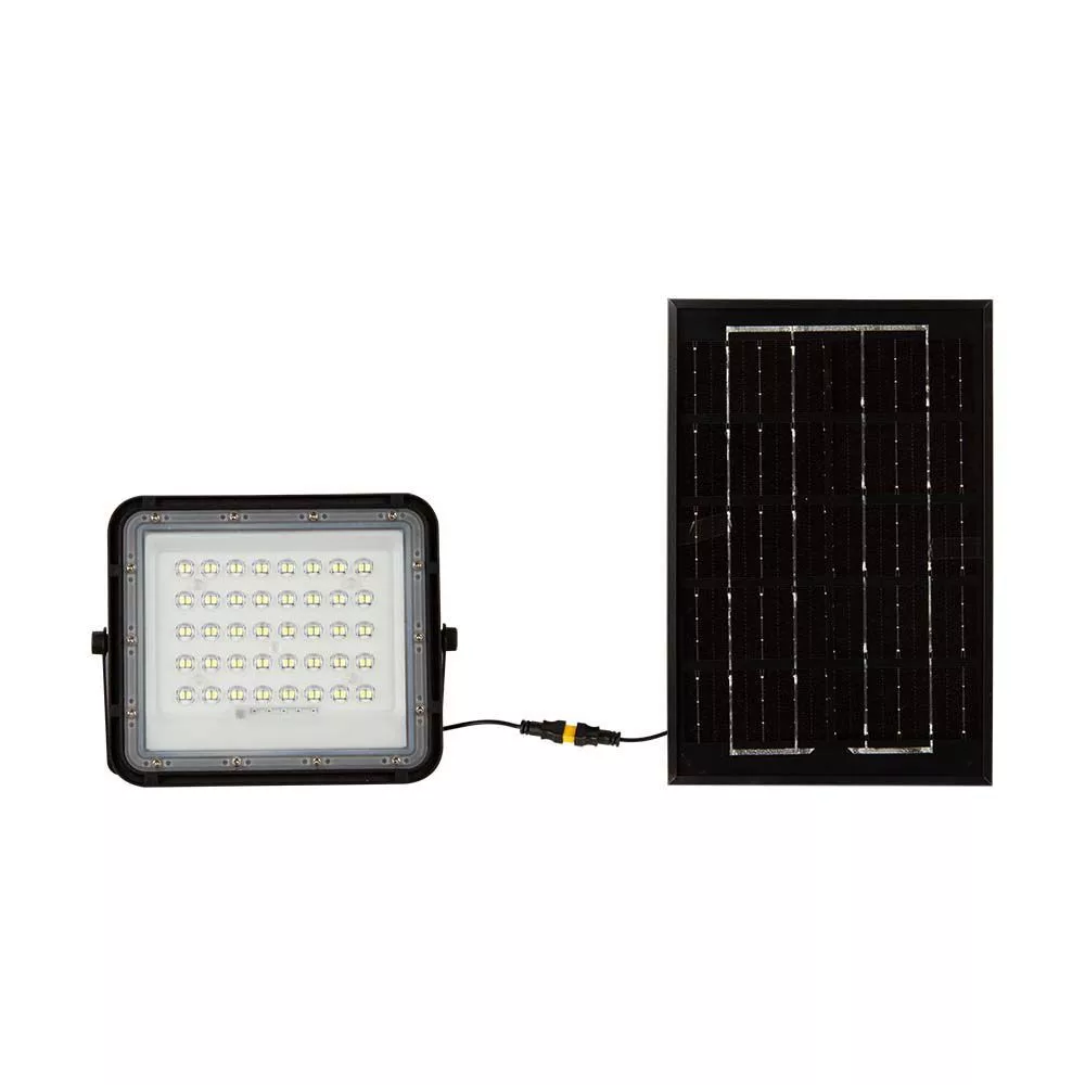 Napelemes LED reflektor távirányítóval, 6400K, hideg fehér, 400lm, 120°, fekete, IP65, V-TAC, 7821