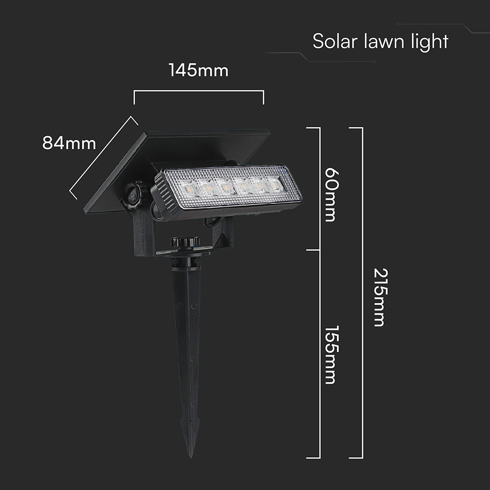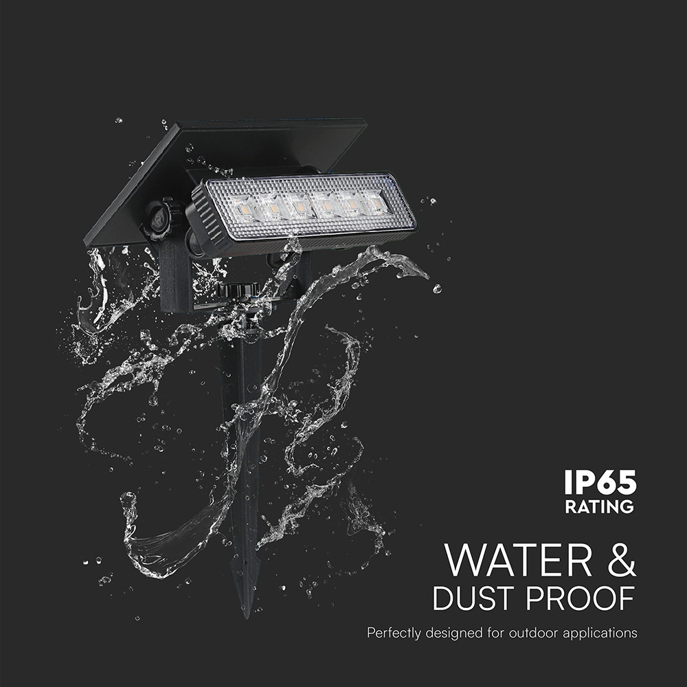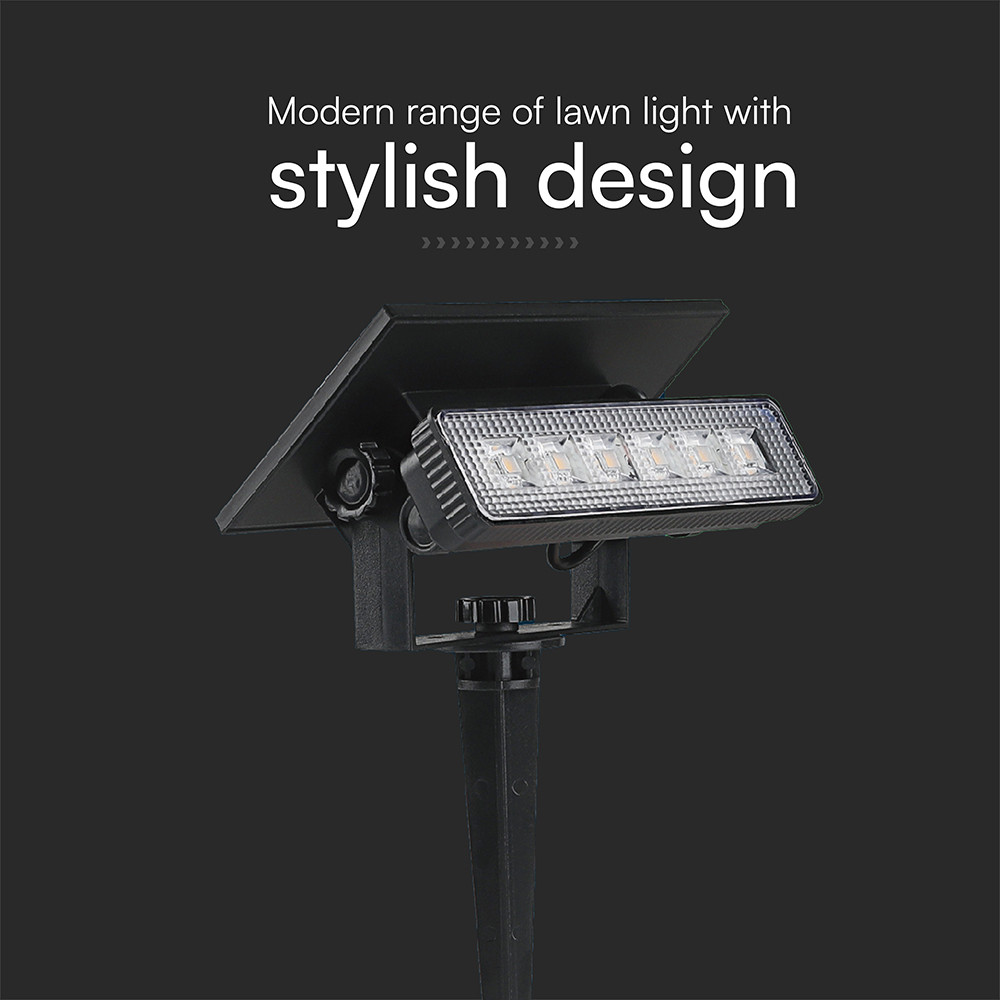 Leszúrható és falra szerelhető Szolár LED lámpa, 3000K, meleg fehér, 80lm, 68°, fekete, IP65, V-TAC, 23757