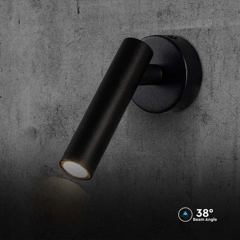 LED fali spot lámpa, 2w, 4000K, természetes fehér, 150lm, 38°, fekete, CRI>80, V-TAC, 10291