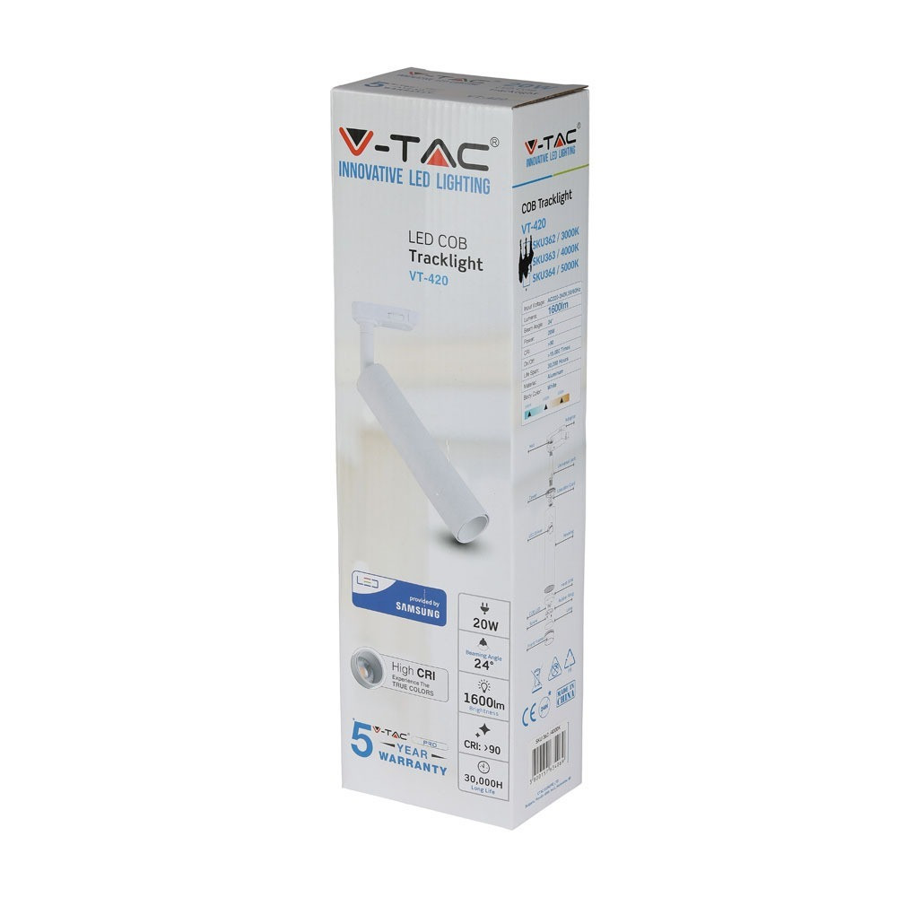 VT-420 20W LED Sínre Szerelhető Lámpa Samsung Chip 3000K 5 Év Garancia, Fehér Test