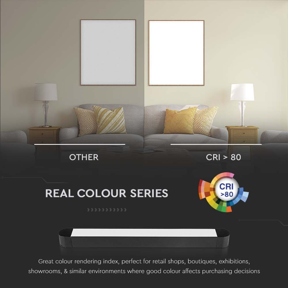 Lineáris LED lámpatest mágneses sínhez 48V, 14w, 4000K, természetes fehér, 1500lm, 82°, fekete, CRI>80, 278mm, V-TAC, 10242