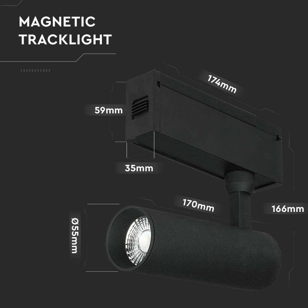 LED spotlámpa mágneses sínhez 24V, 15w, 4000K, természetes fehér, 900lm, 36°, fekete, CRI>90, V-TAC, 7967