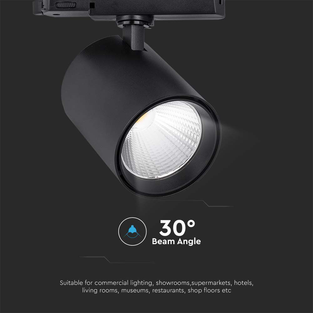LED sínes COB spotlámpa, 35w, 4000K, természetes fehér, 3000lm, 30°, fekete, CRI>80, V-TAC, 10281