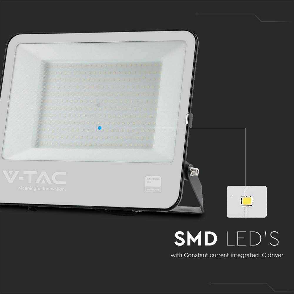 LED reflektor, 200w, 6500K, hideg fehér, 37000lm, fekete, CRI>70, IP65, V-TAC, 9897