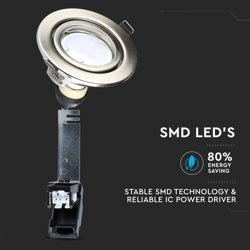 VT-4444 5W GU10 Spotlámpa Foglalattal - Szatén Nikkel Test 3000K 3 Db/Csomag