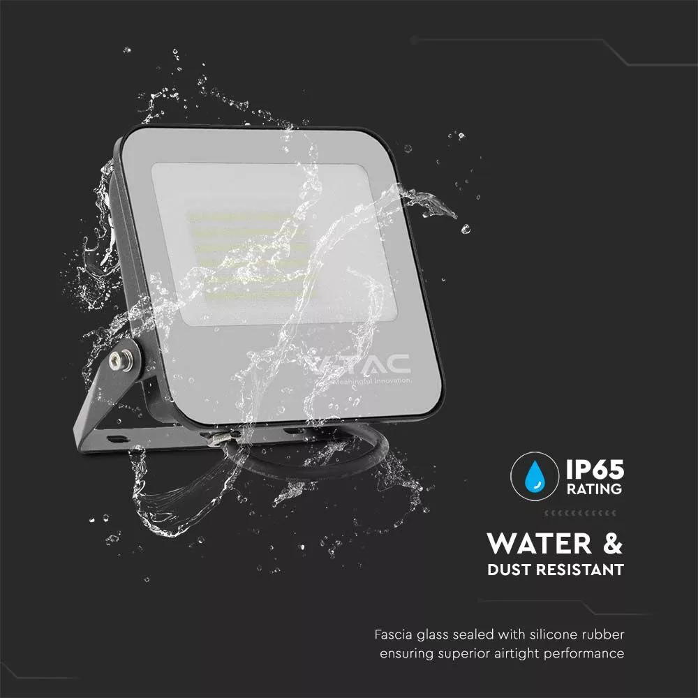 LED reflektor, 50w, 6500K, hideg fehér, 9250lm, fekete, CRI>70, IP65, V-TAC, 9893