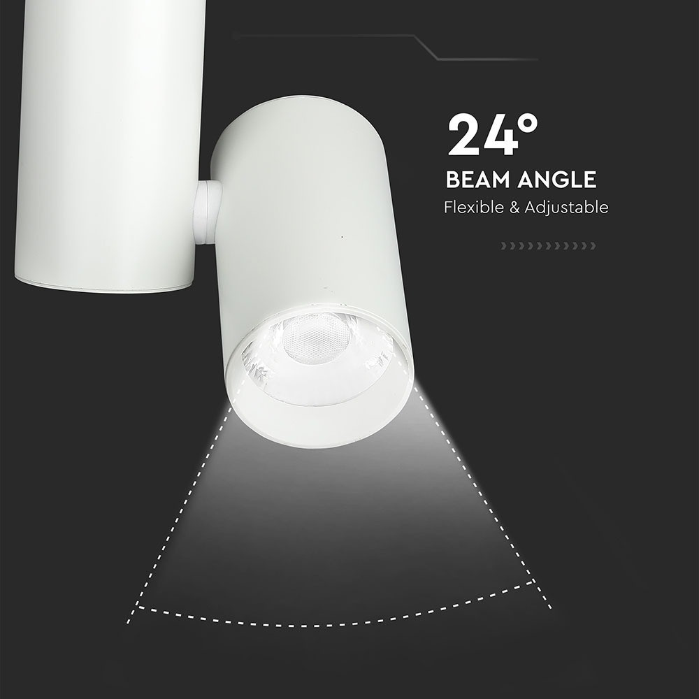 LED sínes spotlámpa, 30w, 6400K, hideg fehér, 2700lm, 24°, fehér, CRI>95, V-TAC, 1294