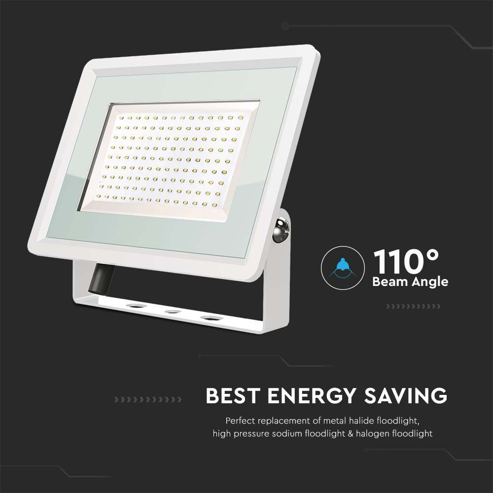 LED reflektor Slimline F osztály, 200w, 4000K, természetes fehér, 17600lm, 110°, fehér, CRI>70, IP65, V-TAC, 6735