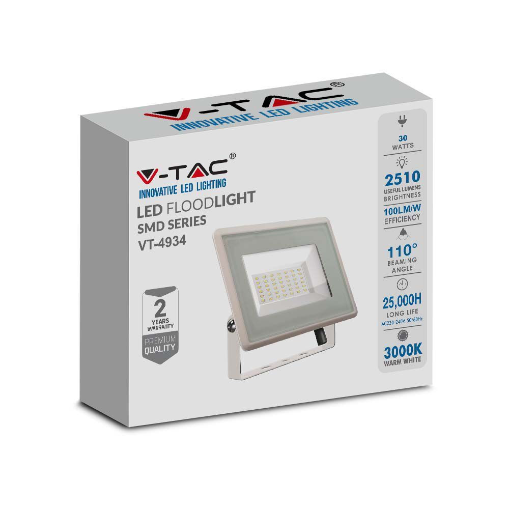 LED reflektor Slimline F osztály, 30w, 3000K, meleg fehér, 2510lm, 110°, fehér, CRI>70, IP65, V-TAC, 6746