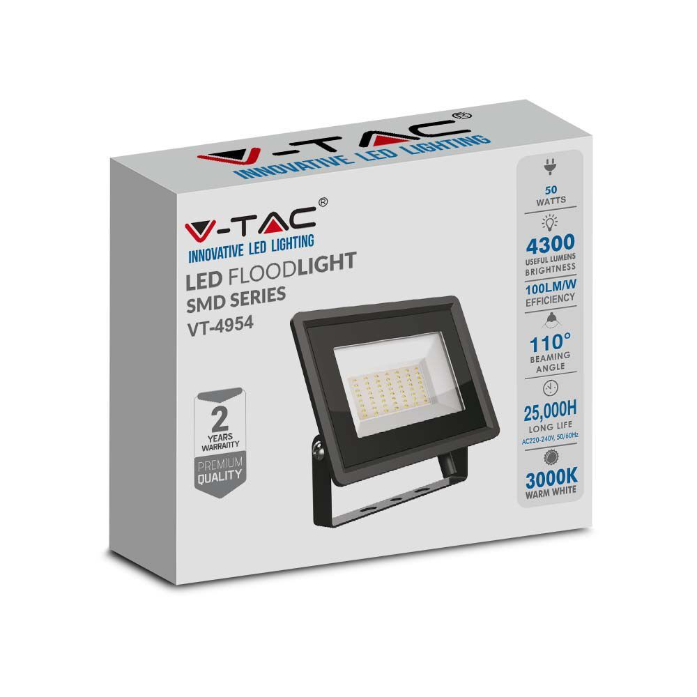 LED reflektor Slimline F osztály, 50w, 3000K, meleg fehér, 5000lm, 110°, fekete, CRI>70, IP65, V-TAC, 6749